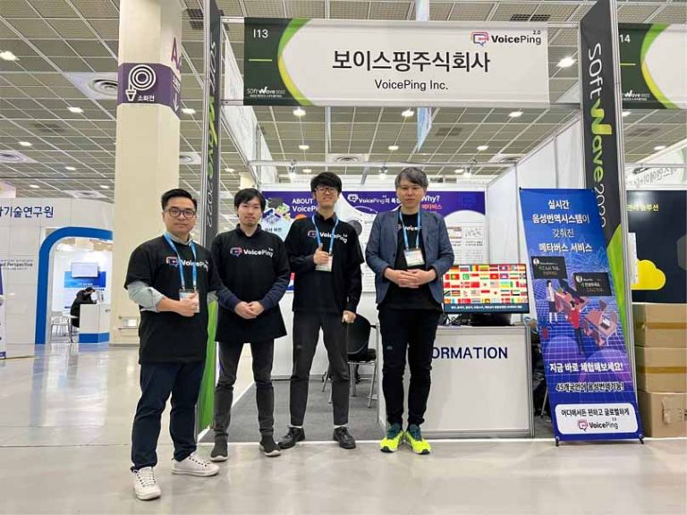 VoicePingが 2022年12月7日から9日まで韓国ソウルCOEXで開催された大型展示会 SoftWave 2022に参加しました。韓国語を話せるメンバーが少ない中、VoicePingの音声翻訳機能をその場で活用しながら、展示会を成功裏に終えることができました。今回は、その話をご紹介致します。