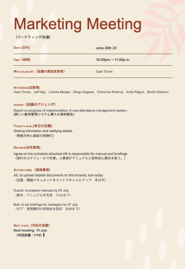 慣れない英語での議事録作成もスムーズに対応し、精度の高い議事録を仕上げるためにも議事録のフォーマットやテンプレートを上手く活用していきましょう。