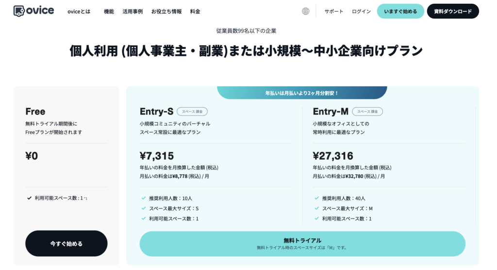 出所:https://www.ovice.com/ja/pricing-smb?countrycode=JP