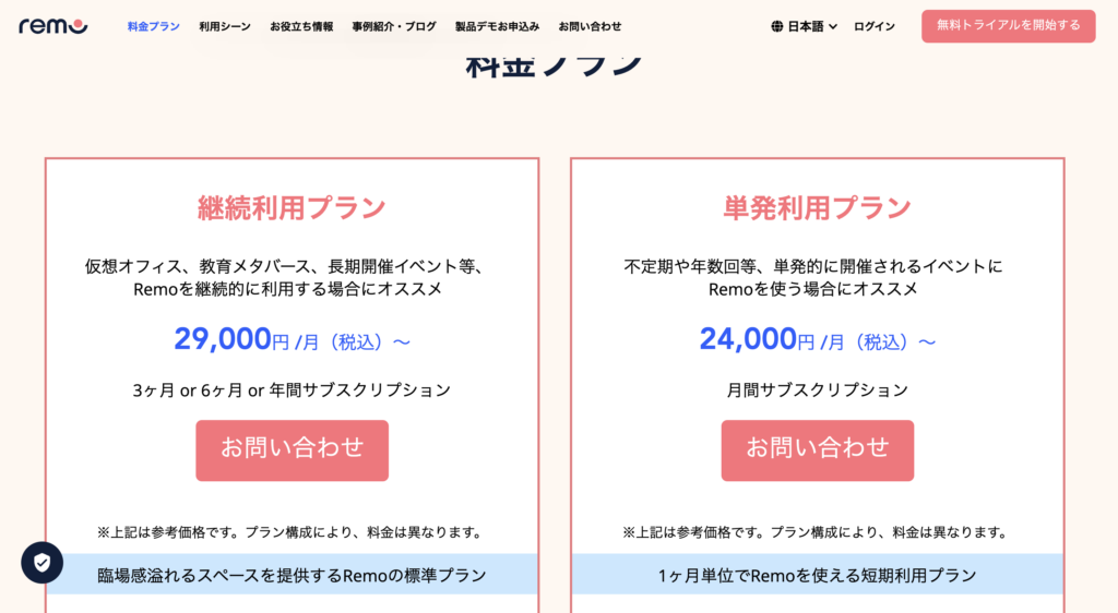 出所:https://jp.remo.co/pricing