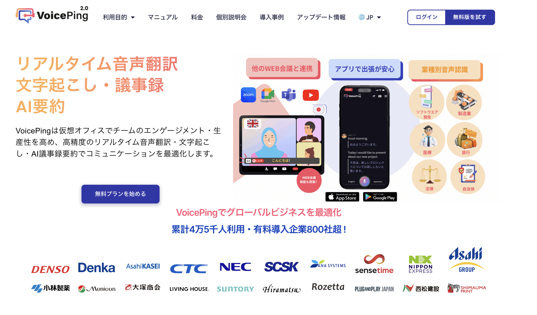VoicePingは、リアルタイム音声翻訳・議事録自動作成機能を備えた仮想オフィスツールです。テレワークにおけるコミュニケーションの効率と創造性を最大化し、日本国内はもちろん、海外メンバーとのビジネスにも強力に対応します。