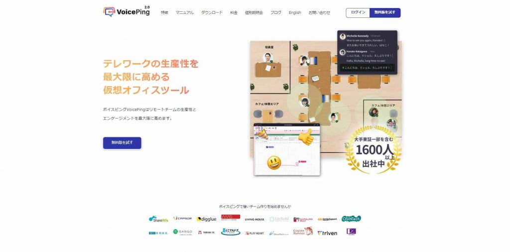 VoicePingとは、インターネット上の擬似的なオフィスを通して、リアルに近いコミュニケーションが取れる仮想オフィスツールです。