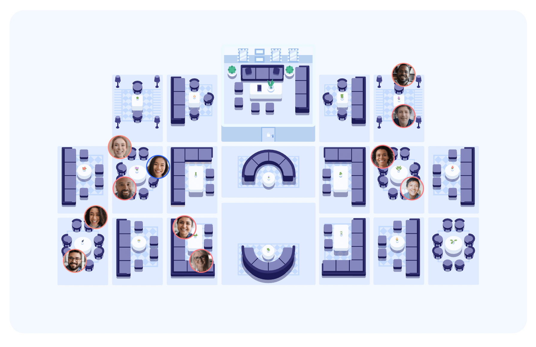 リモート環境における孤独解消のためにバーチャルオフィスツールを導入するのもおすすめです。バーチャルオフィスツールとは、ツール内の画面で社内の仮想空間を構成し、アイコン操作でメンバーとコミュニケーションを交わせるソフトウェアです。