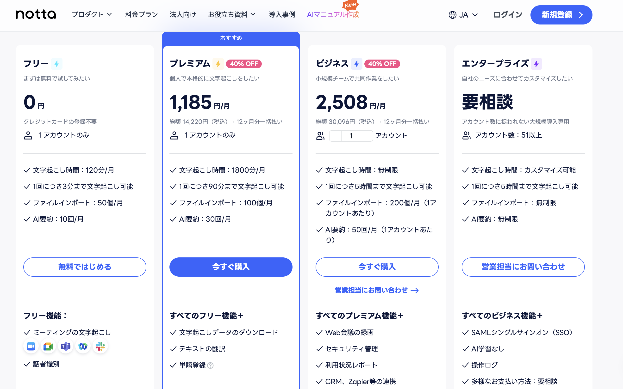 特徴:42か国語に対応(日本語、英語、中国語など)音声翻訳と自動文字起こし機能議事録を保存可能