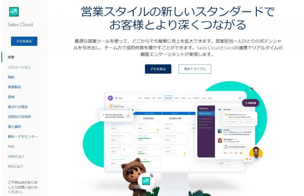 SFAの中でもっともよく知られている「Sales Cloud」。SFAを検討する際にはまず候補に挙がるのではないでしょうか。